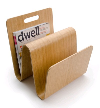 Molded and folded to keep your favorite magazines close at hand. This sensuous form provides two deep spaces to hold plenty of magazines. It matches all our office products and would be a welcome addition to any bathroom. Available in birch, oak or walnut.