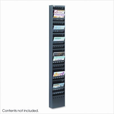 4322BL / 4322GR Set Color: Black It s all about access! Access to information that is. The steel magazine rack with is attractively designed with pockets to display literature. Perfect for office organizing, guest and reception reading materials, or school resources. Mounts to a wall or can stand on the floor with a steel base. Features: -23 pocket magazine rack and base. -Available in black and gray finish. -Steel construction. -23 Compartments. -Powder coat finish. -Manufacturer provides lifetime warranty. -Compartment dimensions: 7.25'' H x 9'' W x 0.75'' D. For more information on this product please view the Installation Sheet(s) below: 23 Pocket Magazine Rack Installation Sheet