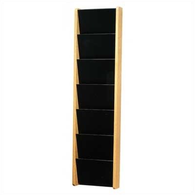 1070 (Oak Finish, Black) Color: Black, Pocket Style: Painted Solid Wood, Side Panel Finish: Oak Colorful and functional, this seven pocket magazine rack has room to organize and display an array of periodicals. It is available with either clear acrylic or painted solid wood pockets. Choose from a variety of colors and wood finishes to fully match your office decor. Features: -Seven pockets -Available with clear acrylic or painted solid wood pockets -Available in Black, Blueberry, Evergreen or Sandstone painted finishes -Solid wood side panels available in Victorian Cherry, Walnut, Mahogany, Oak, or Black on Oak -Pocket divider sold separately Specifications: -Overall dimensions: 54.125'' H x 13.25'' W x 4'' D -Pocket dimensions: 8.25'' H x 11.75'' W x 1.75'' D